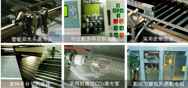 • 產(chǎn)品特點 1、采用雙激光頭,標(biāo)配蜂窩巢工作平臺。 2、一機等于2臺機器的效率,大大提高了加工功效。 3、廣泛應(yīng)用于 服裝業(yè) , 廣告,工藝禮品,鞋,玩具,電腦繡花裁剪,模型,建